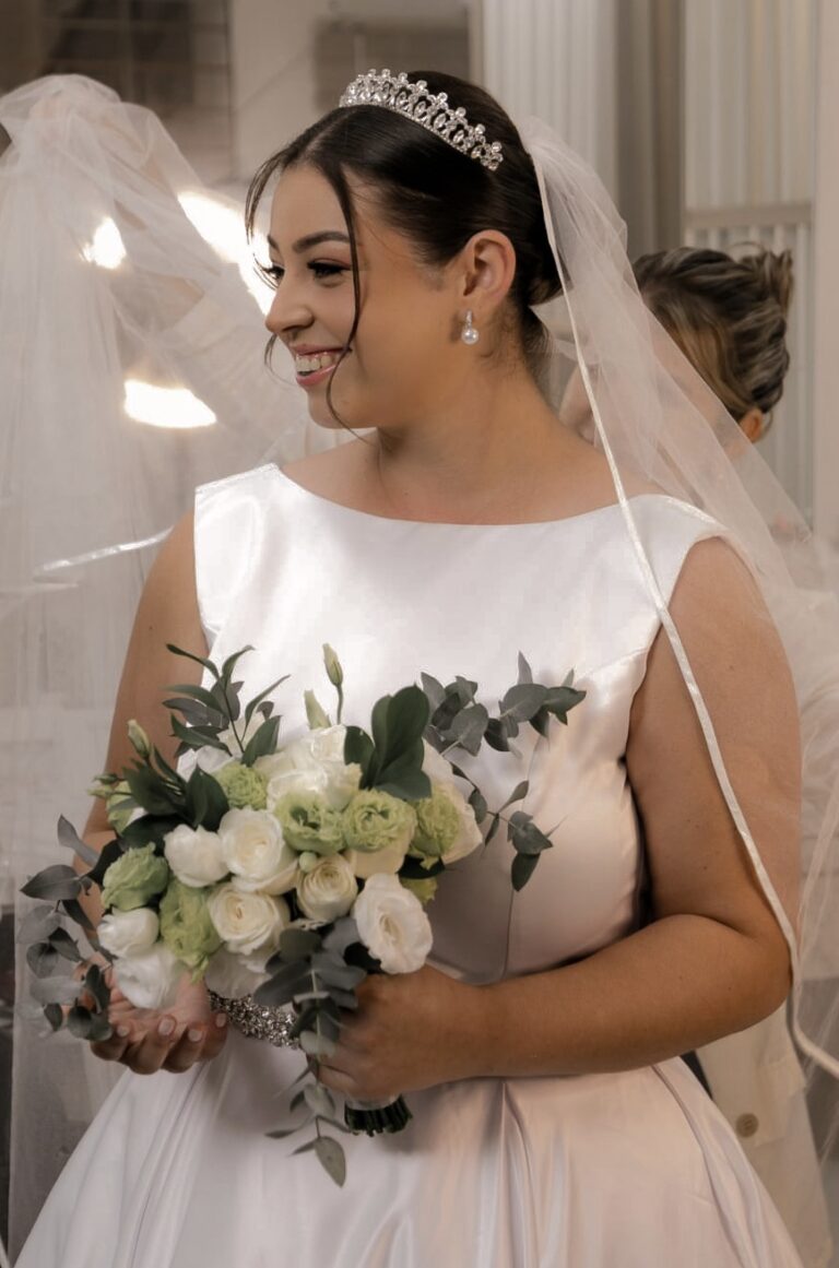 Depoimento da Noiva: “Meu casamento foi dia 22 de março de 2025. Um atendimento simplesmente perfeito. Profissionais excelentes e totalmente responsáveis com o meu sonho. Eu estava ansiosa e a equipe foi um amor comigo. Somente gratidão pelo carinho e atenção. Indico com toda a certeza. Tive uma experiência maravilhosa. Trabalho impecável!”